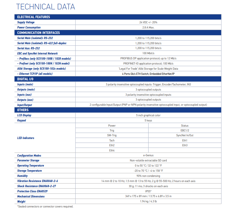 得利捷SC5100固定式工业系统控制器的设计包含了整个固定式工业扫描器组合(DS/DX系列激光阅读器、AV系列扫描器、DM系列体积测量仪)的本公司产品集成,且支持第三方组件(如RFID、秤、网络相机)的集成开放接口。其结果是完全支持的系统解决方案(DWS=Scan-Dim-Weight,BHS=Baggage Handling等),并为新的应用解决方案提供了可能性。 一个完全可配置的嵌入式4口千兆以太网交换机,可选的现场总线模块和扩展的内存强有力的说明了它可以灵活地支持复杂的解决方案,并为本地和远程监控提供先进的工具(时刻应对物联网和工业4.0环境)。